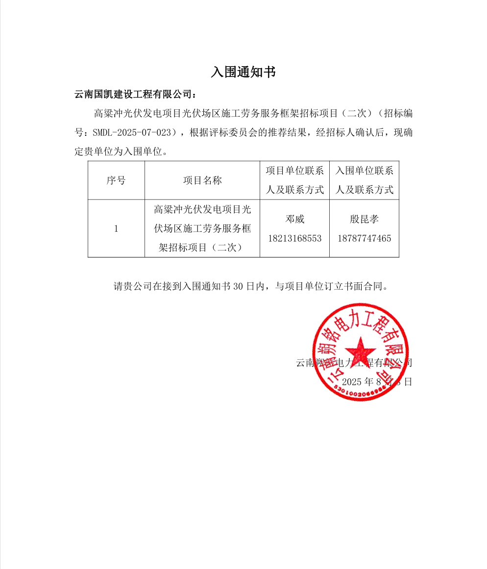 云南电建新能源开发有限公司高梁冲光伏发电项目光伏支架中标公告