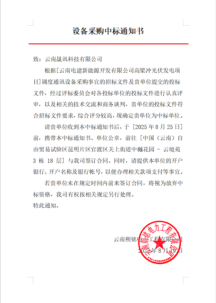 云南电建新能源开发有限公司高梁冲光伏发电项目调度通讯设备中标公告