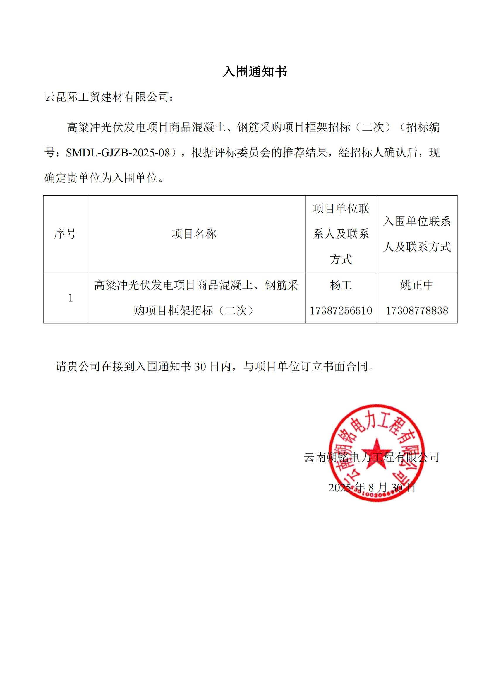 高粱冲光伏发电项目商品混凝土、钢筋采购项目框架招标(二次)
